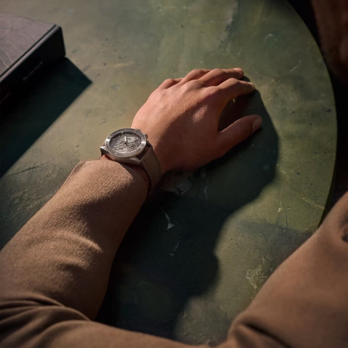 Einseitig drehbare Lünette aus satinierter Titan mit Keramikeinlage