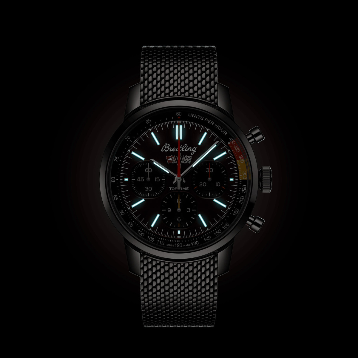 Ref. AB01761A1K1A1 - Die 1960er Jahre waren ein Jahrzehnt, das von Experimentierfreude, Spass, Freiheit und Energie geprägt war. Ob man mit einem Motorrad eine Spritztour machte oder in einem Sportwagen Gas gab, das Leben lief auf Hochtouren. Willy Breitling spürte diesen Tempowechsel und nahm sich vor, einen unkonventionellen Chronographen zu entwickeln, der den Schwung der Epoche einfing. Er nannte ihn die Top Time. Diese lebendige Tradition wird auch heute noch fortgesetzt, denn Breitling arbeitet bei der Entwicklung der Top Time mit einigen der angesagtesten Namen der Auto- und Motorradindustrie zusammen.