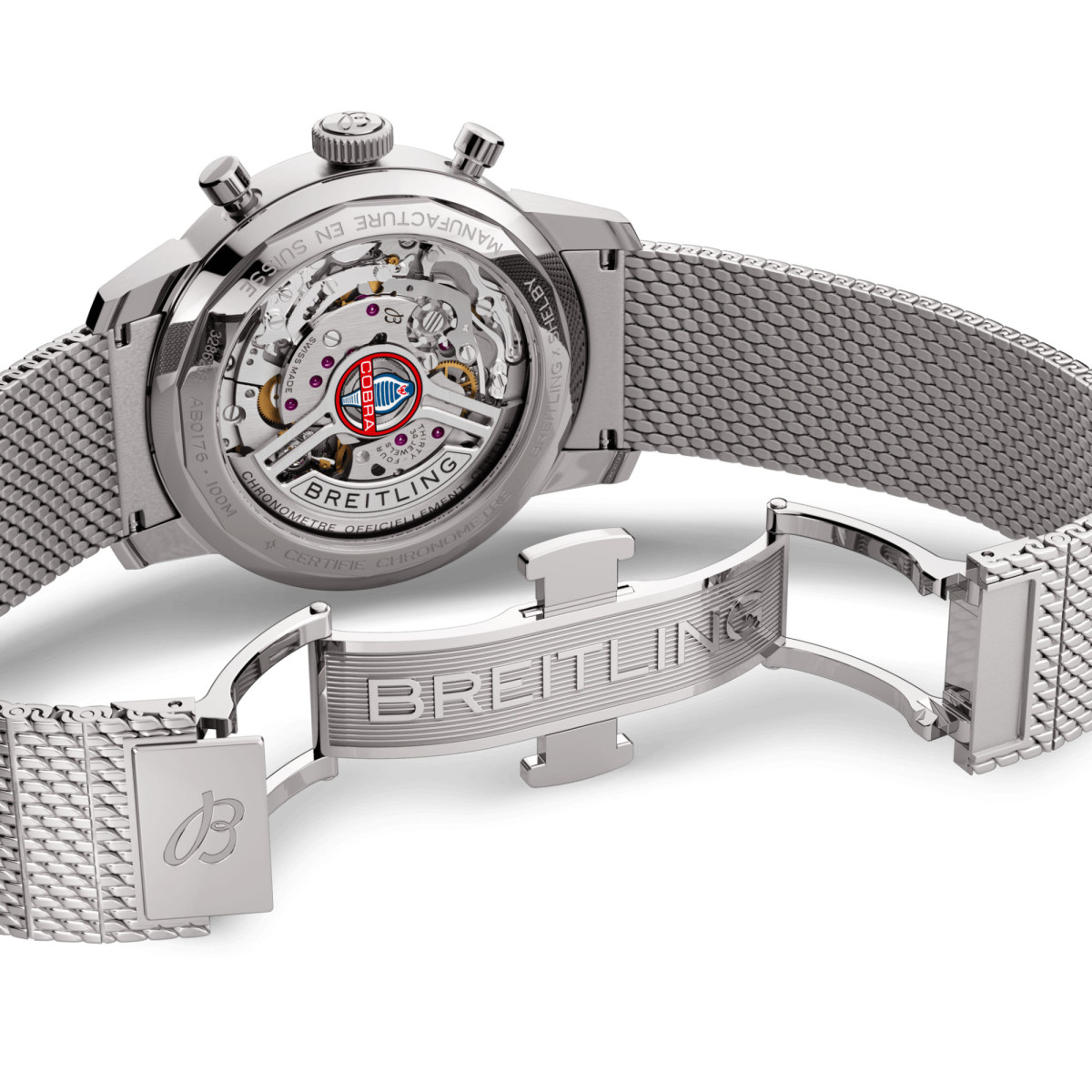 Der Ford Mustang der ersten Generation, der von 1964 bis 1974 produziert wurde, war das Auto der Stunde, wenn es darum ging, im coolen Amerika der 1960er Jahre auf die Strasse zu gehen. Die lebende Legende wird nach wie vor produziert, doch Autoliebhaber wissen, dass die allerersten Modelle, die den ungezähmten Geist der 1960er Jahre einfingen, auch die coolsten waren. Die Top Time B01 Ford Mustang verfügt über die Farben und das Emblem ihres Oldtimer-Pendants sowie über ein perforiertes Lederarmband, eine Tachymeterskala und kontrastierende «Squircle»-Zifferblätter (nicht ganz quadratisch, nicht ganz rund), die die besondere Atmosphäre klassischer Armaturenbretter erzeugen. Zudem hat sie einen Motor unter der Haube, mit dem man sich sehen lassen kann: das aussergewöhnliche Breitling-Manufakturkaliber 01.