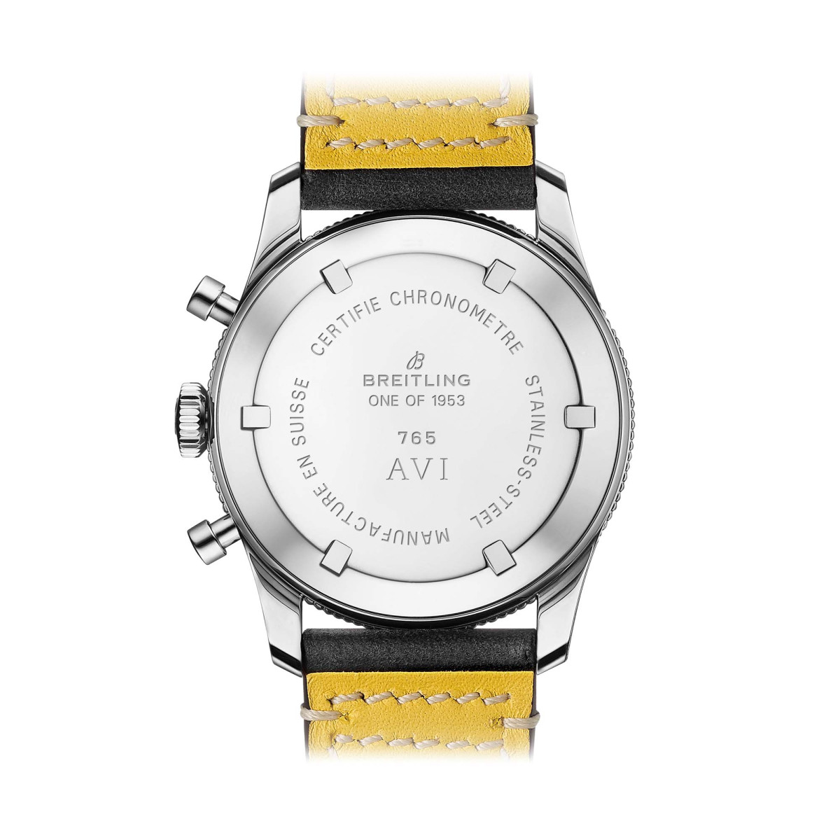 Es gibt nur zwei Zugeständnisse an die heutige Zeit, durch die sich dieses neue Modell von seinem berühmten Vorgänger unterscheidet: Die Wasserdichtigkeit wurde auf 3 Bar (30 Meter) erhöht, und wer ganz genau schaut, wird sehen, dass die Aufschrift «GENEVE» nicht mehr auf dem Zifferblatt zu sehen ist. Angetrieben wird die AVI Ref. 765 1953 Re-Edition vom hauseigenen Breitling-Manufakturkaliber B09. Dieses COSC-zertifizierte Kaliber mit Handaufzug basiert auf dem berühmten Breitling-Kaliber 01 und wurde speziell für die Neuauflagen historischer Uhren entwickelt. Die Uhr verfügt über ein schwarzes Lederarmband im Vintage-Stil mit Dornschliesse und ist auf 1953 Stück limitiert, die alle die Gravur «ONE OF 1953» tragen.