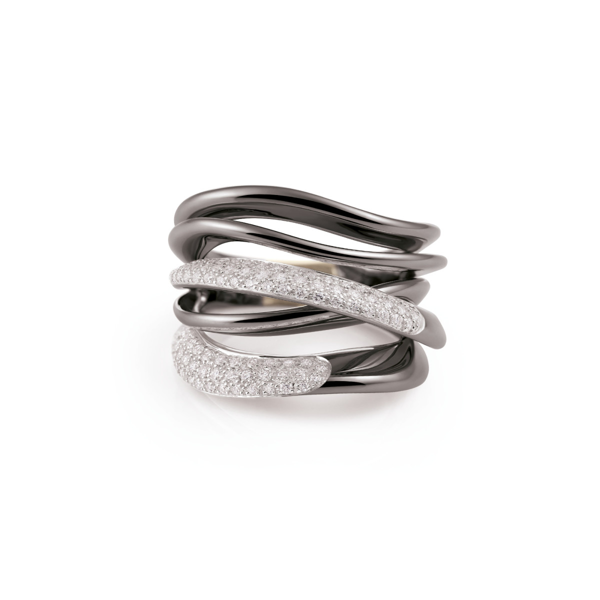 Ref. GAN3688GLUE - Firenze Galaxy Lux Ring, 18Kt Black Lava Gold mit polierter Oberfläche und Diamanten.