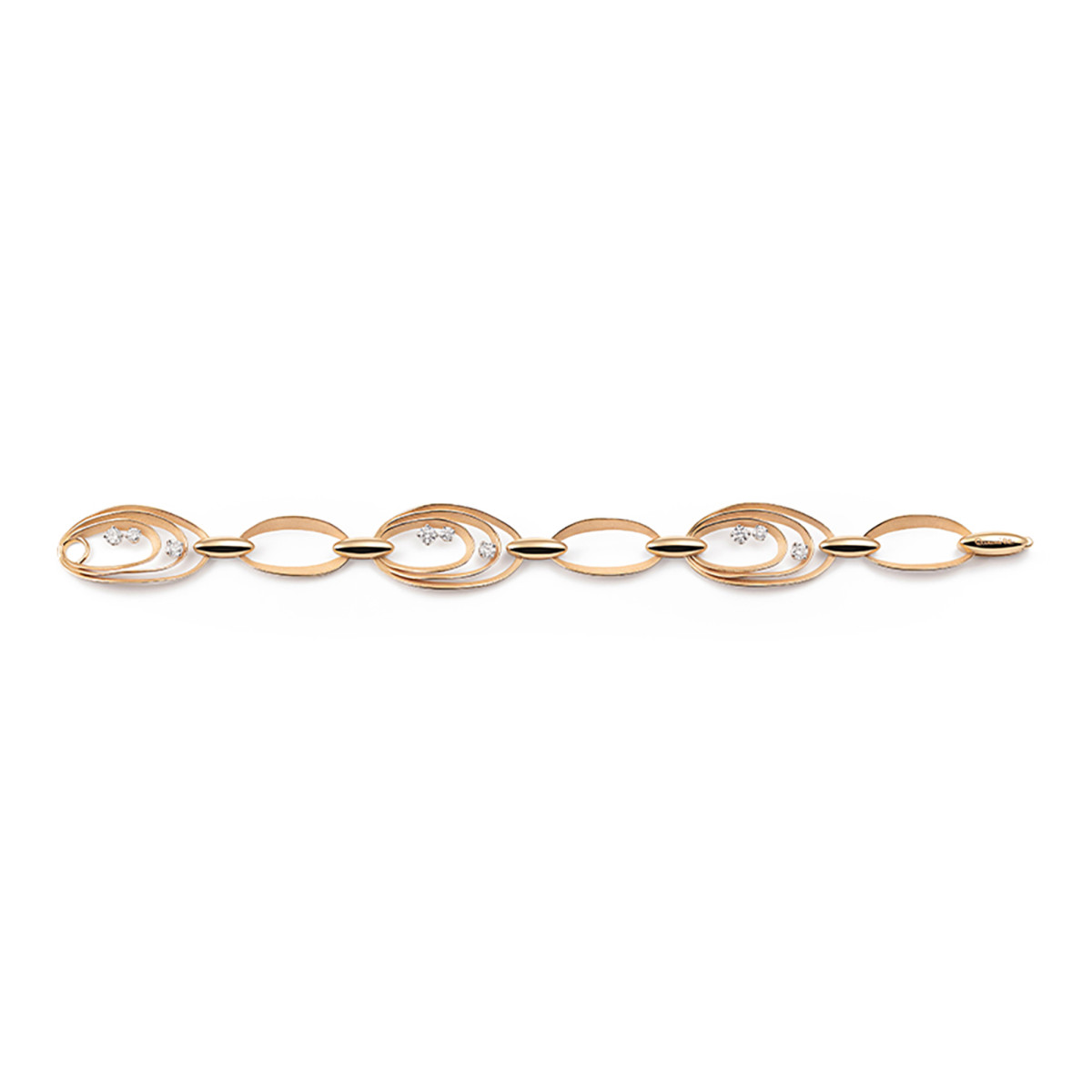 Ref. GBR3679ICOJ - Samtige, von Diamanten beleuchtete Goldbänder folgen einander in einem Wechselspiel weicher Geometrien. Schmuck mit einem vielseitigen und modernen Stil, der sich durch sein raffiniertes und essentielles Design auszeichnet.