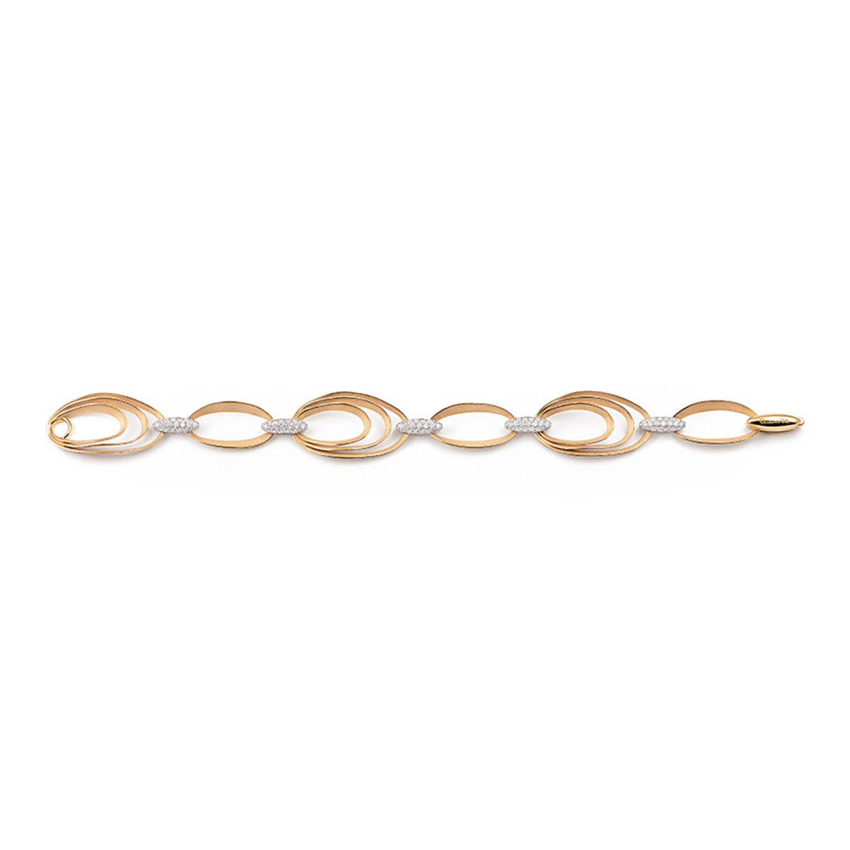 Ref. GBR3679PAVJ - Ein lebendiges Diamantpavé trifft auf dünne Kurven aus 18-karätigem Gold. Schmuckstücke mit modernem Flair, leicht und vielseitig, die von morgens bis abends getragen werden können.