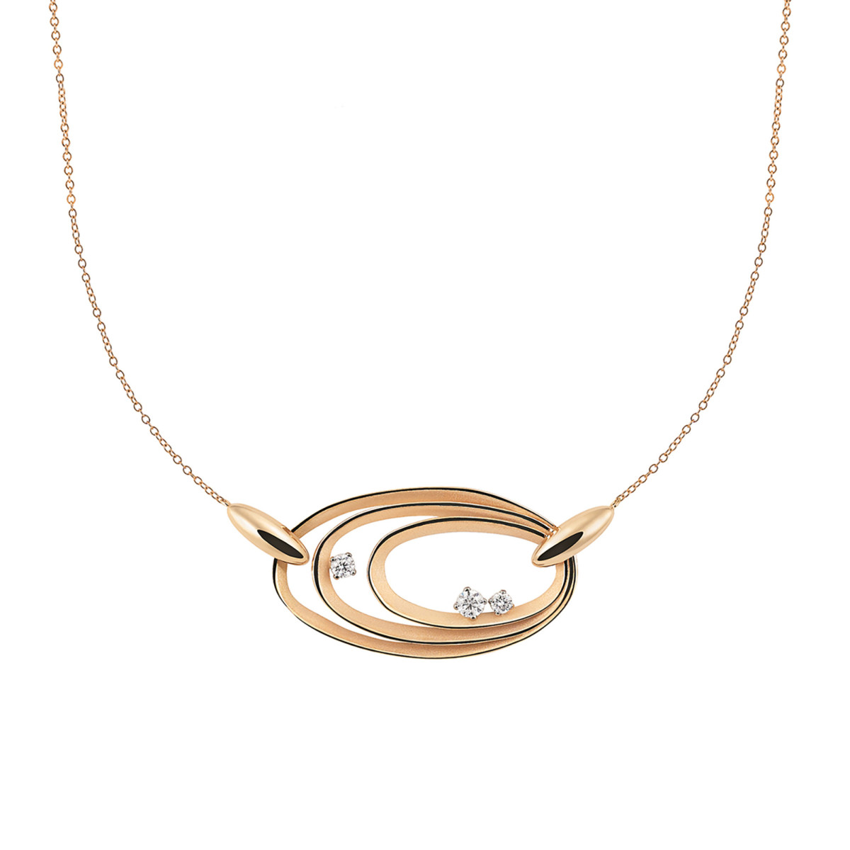 Ref. GCO3678ICOJ - Samtige, von Diamanten beleuchtete Goldbänder folgen einander in einem Wechselspiel weicher Geometrien. Schmuck mit einem vielseitigen und modernen Stil, der sich durch sein raffiniertes und essentielles Design auszeichnet.