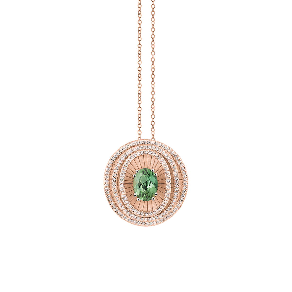 Ref. GPE3637PT12 - Cocoon fasziniert durch eine Überlagerung von Goldoberflächen, die den Schmuckstücken eine unerwartete Dreidimensionalität verleihen, und den Blick auf eine kostbare, farbenfrohe Tansanite oder Turmaline lenken. Ein zentraler Stein, der zum Staunen geboren wurde und zwischen den mit Diamanten gekrönten geschwungenen Kurven zum Vorschein kommt.