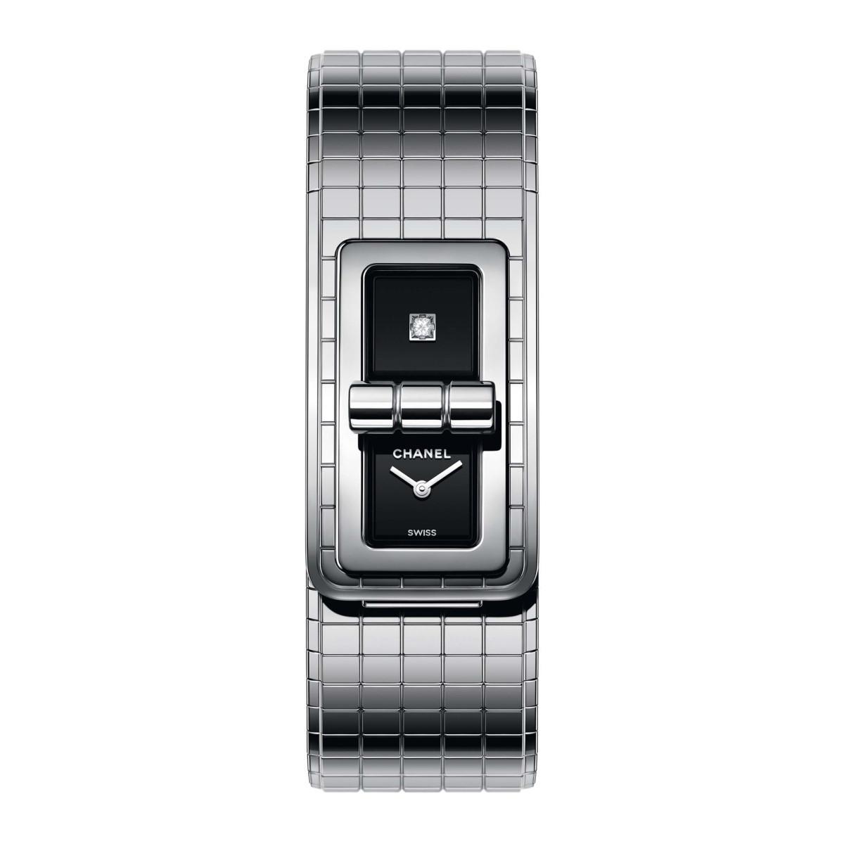 Ref. H5144 - Code Coco ist weit mehr als eine Uhr: Ein mechanisches Schmuckstück für das Handgelenk, das mit Konventionen bricht. Ein moderner, außergewöhnlicher Stil inspiriert von den Codes von CHANEL und den Vorlieben Gabrielle „Coco“ Chanels. Als emblematisches Zeichen von CHANEL seit 1955 ziert das Steppmotiv die Kostüme der Modenschauen, die Taschen, Uhren und Schmuckstücke. Die Mademoiselleschließe, die sich auch am Verschluss der berühmten Tasche 2.55 findet, verschließt die Uhr in einer absolut neuen Geste. Das Armband wird auf eine einzigartige spielerische Weise geschlossen. Unkonventionell und ikonisch. Das geschmeidige, flexible Stahlarmband funkelt und reflektiert das Licht. Es ist eine Hommage an das berühmte Steppmuster-Motiv, das Gabrielle Chanel für ihre Lederhandtaschen verwendete und nun in Form von vielen Schokoladenstücken neu interpretiert wurde. Graphisch und kühn.