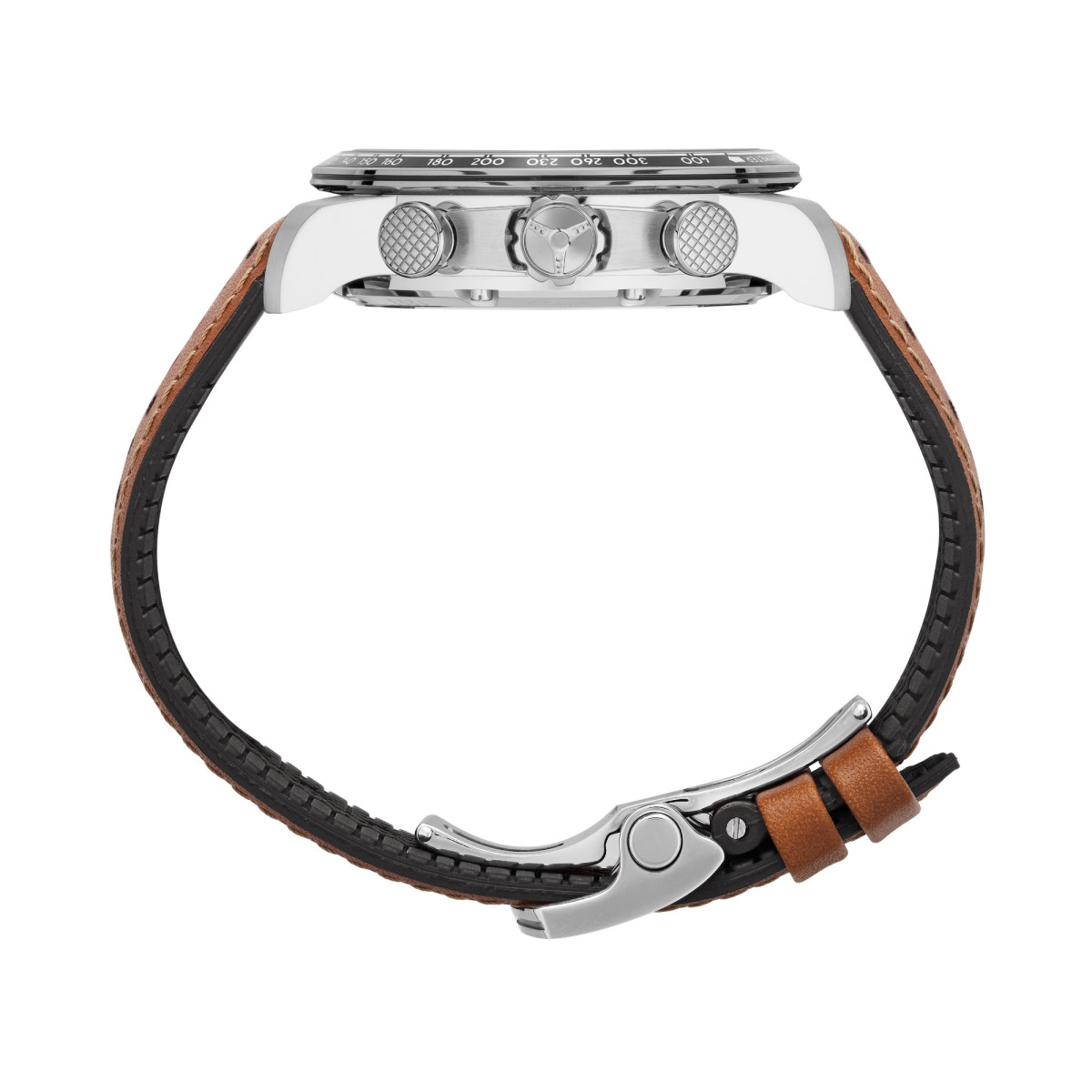 Ref. 168571-3004 - Die Mille Miglia Race Edition bringt die Welt des Autorennens ans Handgelenk. In dem 44 mm grossen Edelstahlgehäuse verbirgt sich ein vom COSC als Chronometer zertifiziertes Chronographenwerk. Dieses zeigt Stunden, Minuten und Datum an. Zudem verfügt es über einen 12-Stunden-Zähler bei 6 Uhr, eine kleine Sekunde bei 9 Uhr sowie einen 30-Minuten-Zähler bei 12 Uhr. Auch ästhetisch hat die Uhr einiges zu bieten. Die Mille Miglia mit ihren markanten roten Details erinnert in vielerlei Hinsicht an Rennwagen: Die Drücker sind von Motorkolben inspiriert, die rutschfesten Oberflächen von Bremspedalen und das Kautschukarmband von Reifenprofilen. Limitierte Auflage von 1000 Stück
