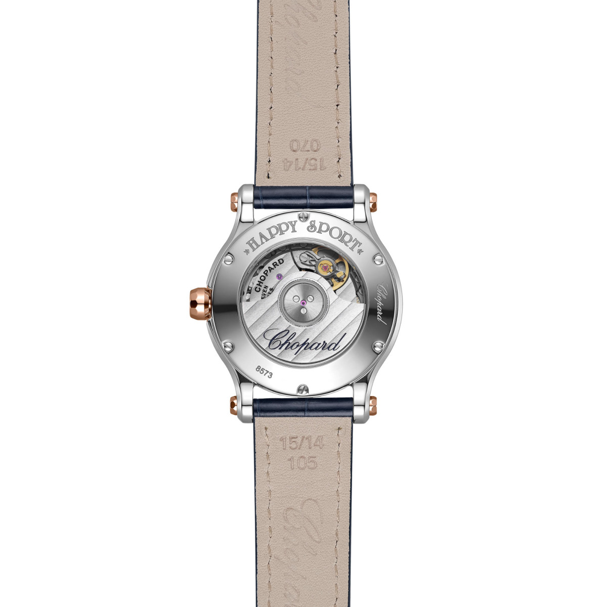 Ref. 278573-6027 - Die Happy Sport-Kollektion ist das Sinnbild für die Kreativität und Stärke von Chopard. Ihre verspielten, frei wirbelnden Diamanten tanzen zwischen zwei Saphirgläsern und fangen seit 1993 die Vorstellungskraft ein, als Chopard das das erste Unternehmen war, das Edelstahl und Diamanten kombinierte. Dank seiner Uhrmacherkompetenz konnte Chopard die Happy Sport Sun, Moon and Stars mit einem mechanischen Uhrwerk mit Automatikaufzug ausstatten, das speziell für Gehäuse von Damenuhren entwickelt wurde. Little Diamonds Do Great Things