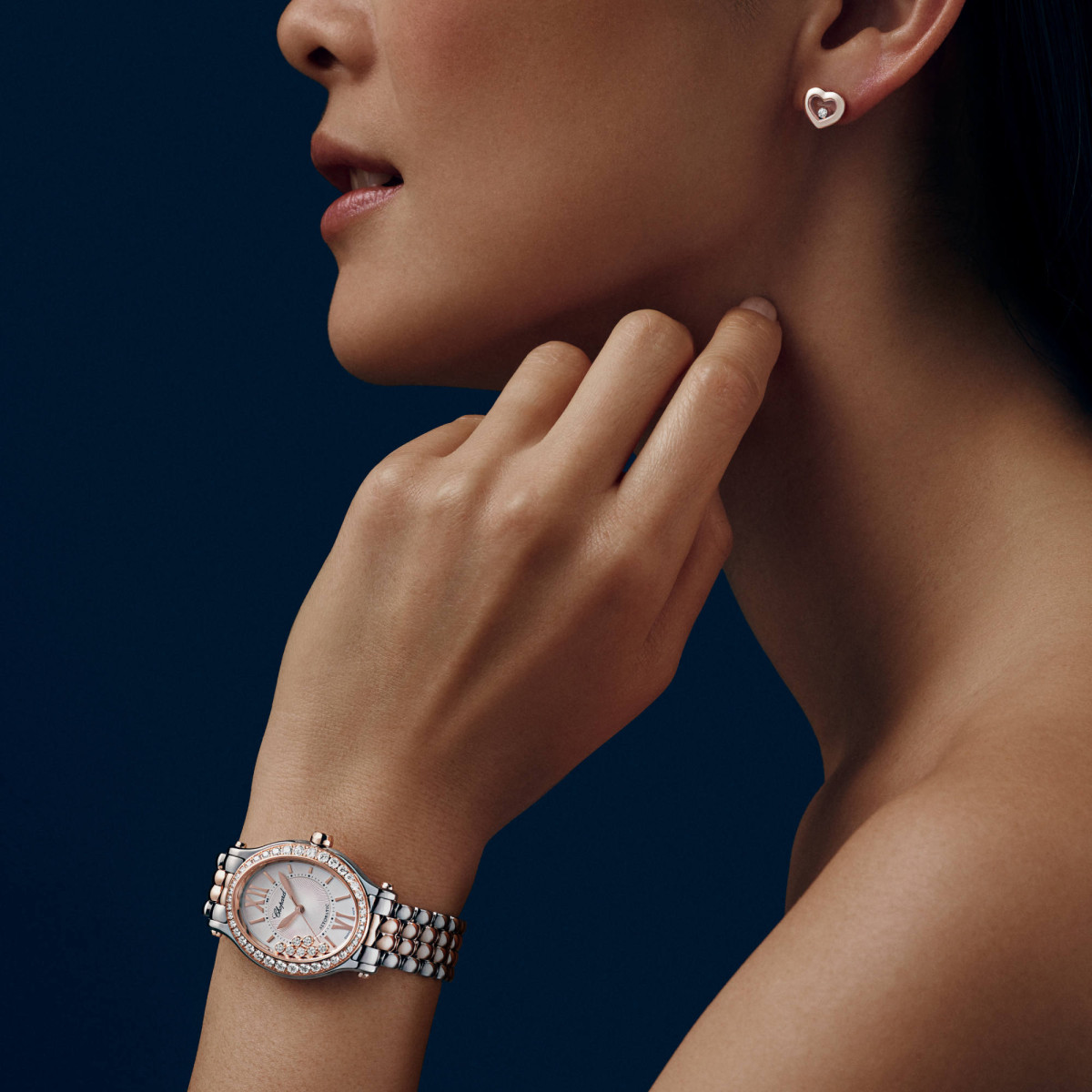 Ref. 278602-6004 - Die Happy Sport-Kollektion ist das Sinnbild für die Kreativität und Stärke von Chopard. Ihre verspielten, frei wirbelnden Diamanten tanzen zwischen zwei Saphirgläsern und fangen seit 1993 die Vorstellungskraft ein, als Chopard das das erste Unternehmen war, das Edelstahl und Diamanten kombinierte. Dank seiner Uhrmacherkompetenz konnte Chopard die Happy Sport Oval mit einem mechanischen Uhrwerk mit Automatikaufzug ausstatten, das speziell für Gehäuse von Damenuhren entwickelt wurde. Little Diamonds Do Great Things