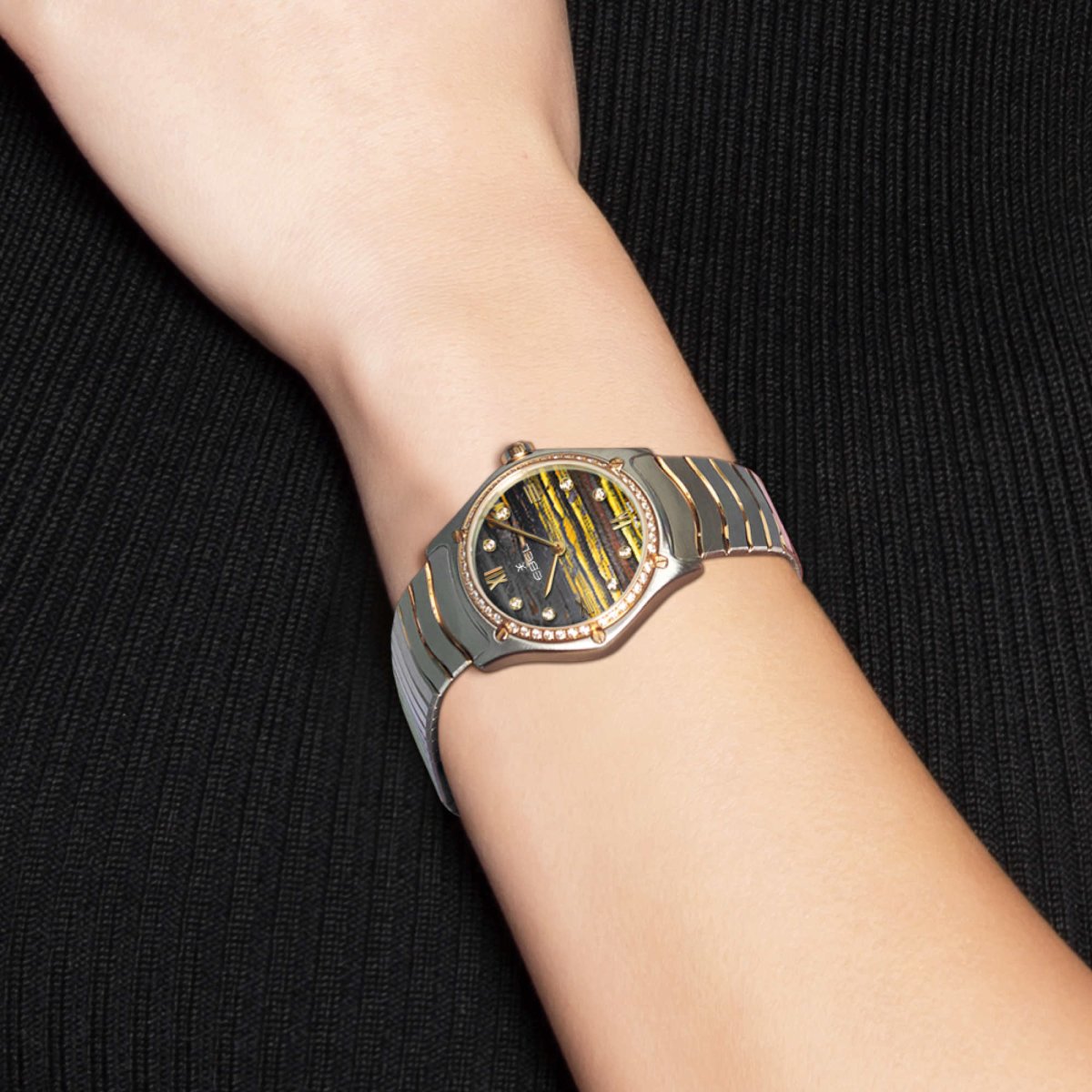 Ref. 1216645 - EBEL Sport Classic - Das ikonische Wellenarmband. Ein legendäres EBEL-Design. Symbolträchtig, herrlich geschmeidig und komfortabel. Schlanke Eleganz, die den modernen Geschmack trifft. EBEL Sport Classic. Ein Zeitmesser mit vornehmen, harmonischen Linien. Fließendes Design von unnachahmlicher Ästhetik.