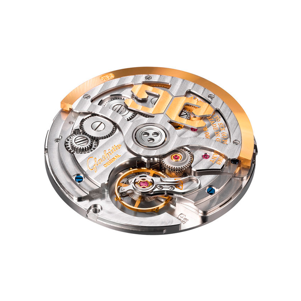 Werk hochfein vollendet: Glashütter Dreiviertelplatine mit Streifenschliff,