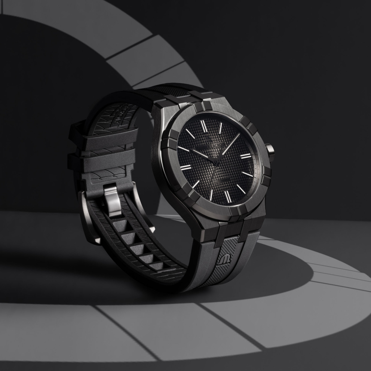 Schwarzes Kautschukarmband mit Maurice Lacroix"M"-Logo