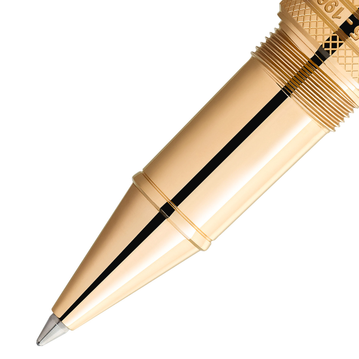 Ref. MB128847 - 2022 würdigt Montblanc einen der berühmtesten Musiker des 20. Jahrhunderts, der als einer der einflussreichsten Gitarristen in der Geschichte der Popmusik gilt: Jimi Hendrix. Inspiriert vom Cover seines Albums „Electric Ladyland“ zeigt der Korpus dieser Limited Edition 1942 eine verlaufende Lackierung unter einer skelettierten Auflage. Die Oberfläche der Kappe symbolisiert das Material eines Verstärkers, der von Hendrix verwendet wurde, und ist mit einem lackierten Badge versehen. Der gelbvergoldete Clip ist angliert und in Form des Tremolos einer E-Gitarre gehalten. Das Montblanc Emblem im Kappenkopf besteht aus Edelharz. Ein weiteres herausragendes Detail ist der gelbvergoldete Kappenring, der von einem Gitarrenkabel der 1960er-Jahre inspiriert ist und vom eingravierten Datum eines berühmten Jimi Hendrix Konzerts geziert wird.