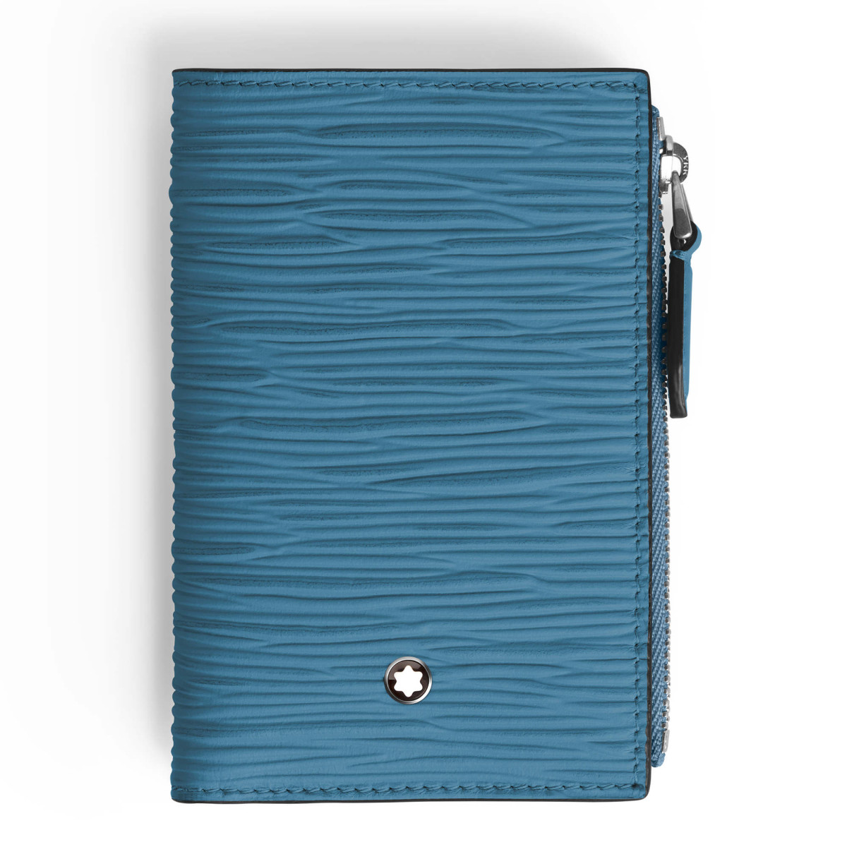 Ref. MB199345 - Konzipiert für stilbewusste Menschen, die viel unterwegs sind, passt diese schmale Brieftasche in Rauchblau in jede Tasche. Aus hochwertigem Leder mit Baumrindenprint gefertigt, bietet sie Platz für sechs Kreditkarten, ein Geldscheinfach und ein Extra-Reißverschlussfach für Münzen.