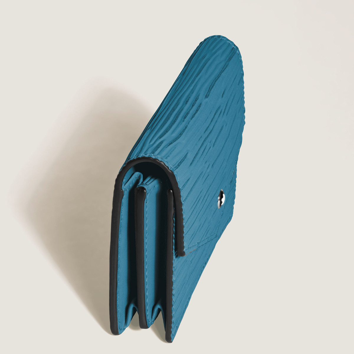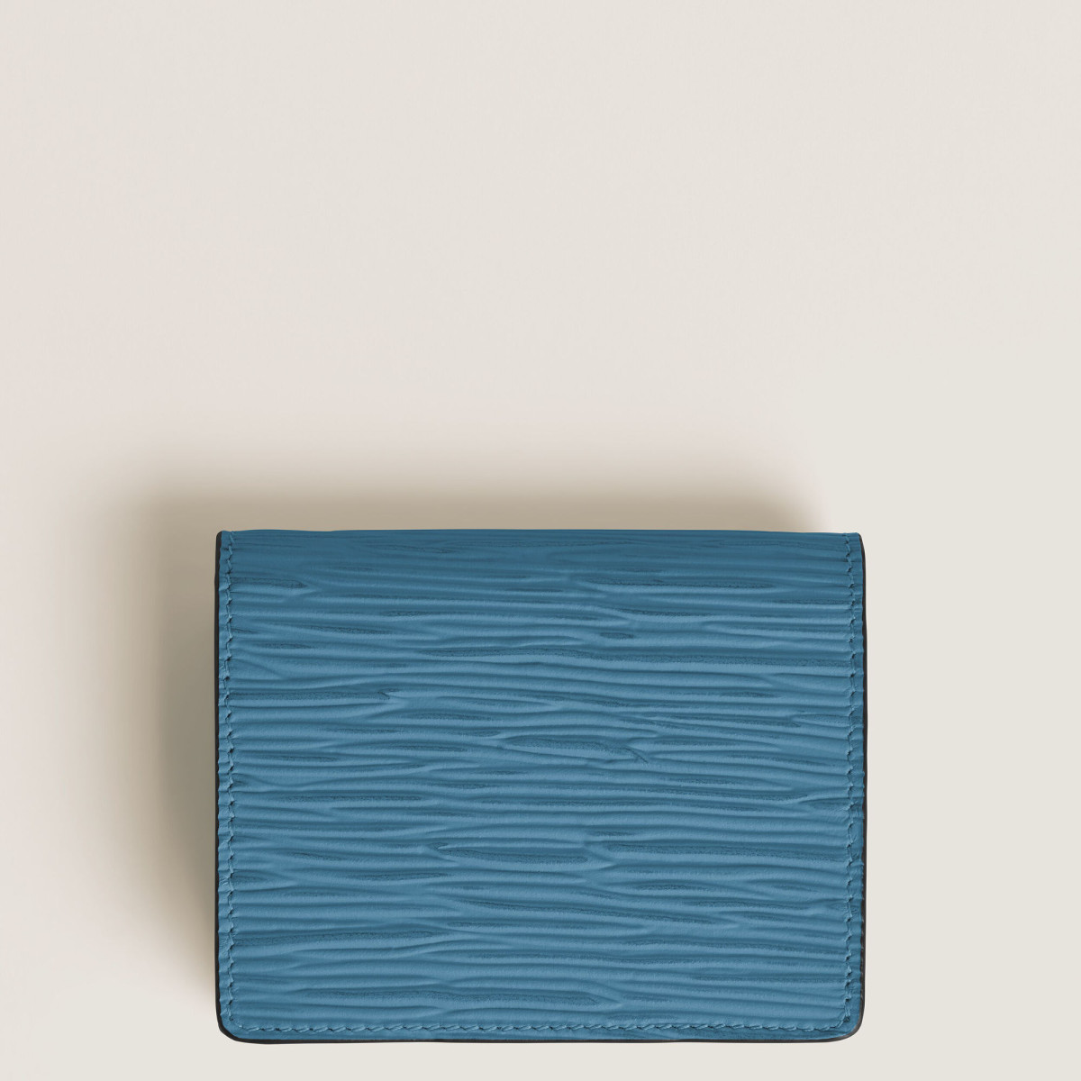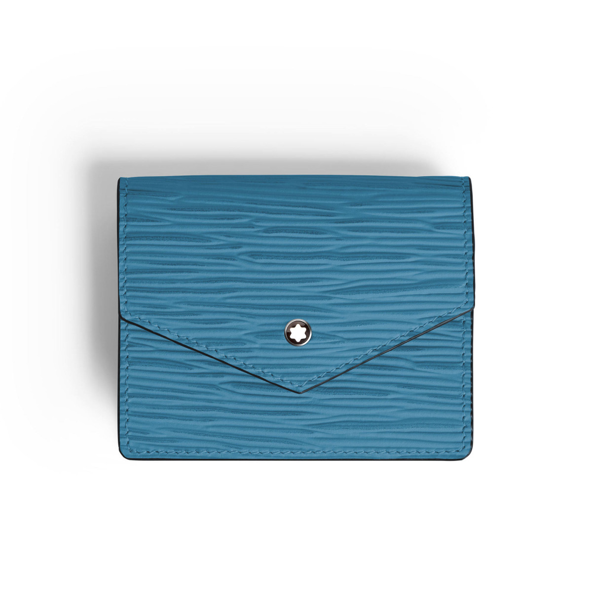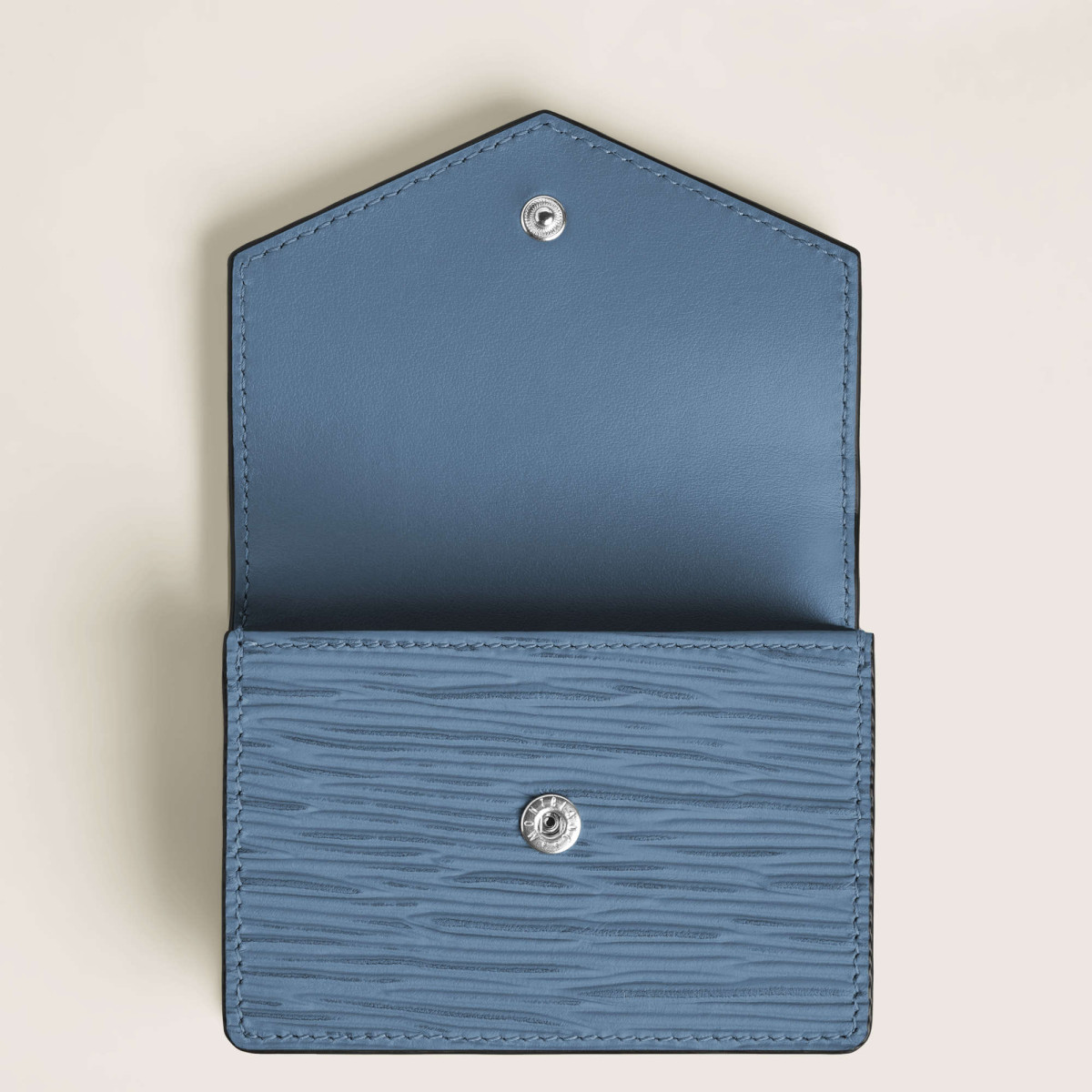 Ref. MB199354 - Das schlichte Kartenetui 4810 wurde für jene entworfen, die in ihrem Alltagsstil einen minimalistischen und funktionalen Ansatz verfolgen. Es ist aus rauchblauem Leder gefertigt und mit einem auffälligen Baumrindenmotiv verziert. Dieses elegante Accessoire verfügt über einen Umschlag, der durch einen Druckknopf gesichert ist, sodass Ihre Karten sicher verstaut bleiben. Im Inneren bietet es zwei Fächer und ein Extrafach für Ihre wichtigsten Karten und ein paar Extras.