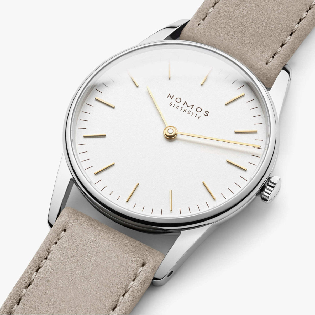 rhodinierte Werkoberflächen mit Glashütter Streifenschliff und NOMOS-Perlage