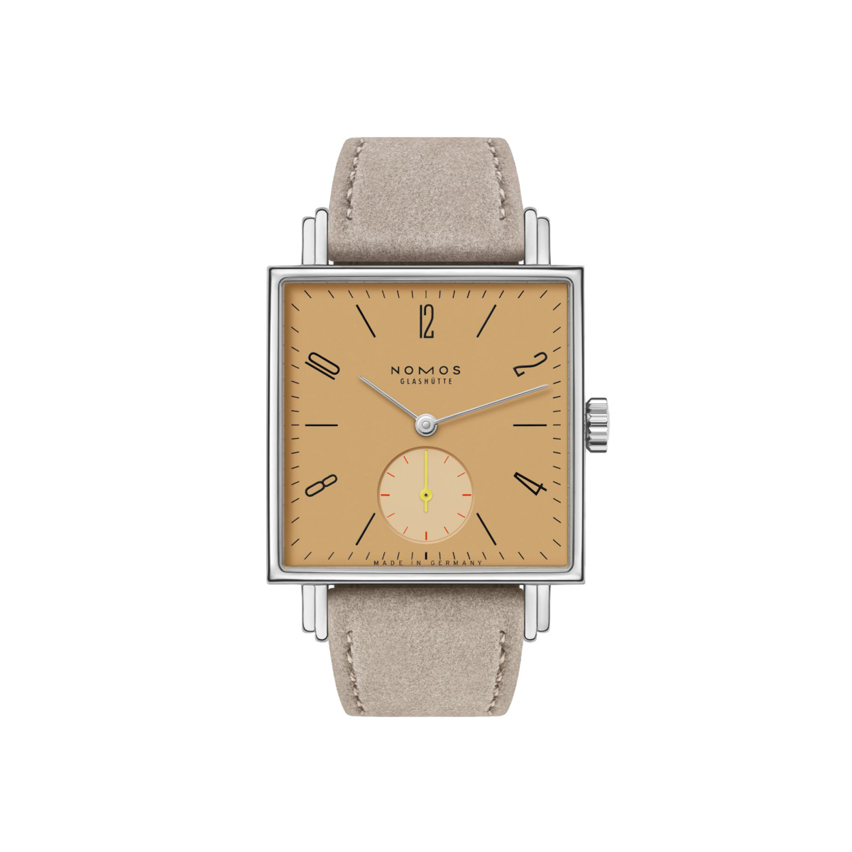Ref. 437 - Ocker gehört zu den ältesten bekannten Farbstoffen und wurde in der antiken Malerei ebenso geschätzt wie im altägyptischen Königshaus. Tetra Ochra bringt einen reichen goldenen Ton ans Handgelenk, der Selbstvertrauen und Optimismus vermittelt. Das quadratische Gehäuse verbindet diese Farbkraft mit zeitgenössischer Ästhetik – und erinnert daran, wie harmonisch sich Tradition und Innovation in wahrer Handwerkskunst verbinden.
