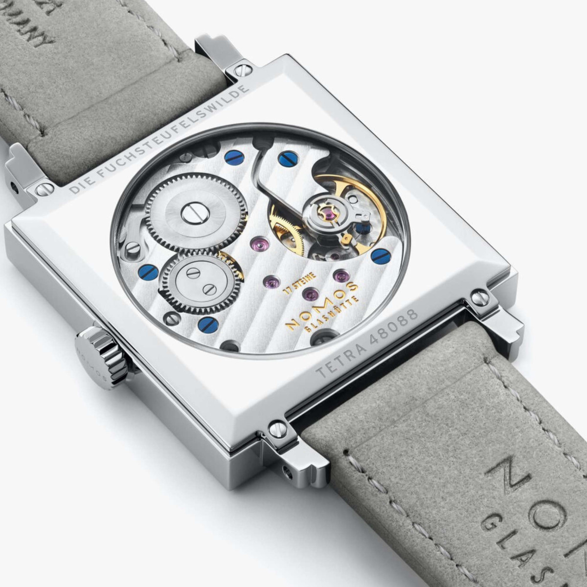 Ref. 475 - In kräftigem Aubergine signalisiert Tetra Selbstbewusstsein. Das luxuriöse Roségold der kleinen Sekunde fügt etwas Genießerisches hinzu, der türkis lackierte Sekundenzeiger zeigt Sinn für Humor. Am samtgrauen Band aus veganem Velours liegt die Handaufzugsuhr mit dem manufakturgefertigten Alpha-Kaliber weich am Arm. Wertvoll und präzise – einzigartige Uhrmacherkunst aus Glashütte