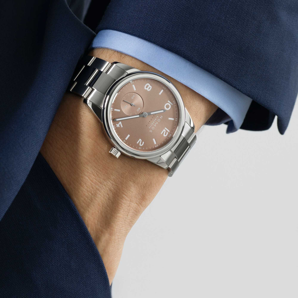 Ref. 761 - Die Farbe dieses galvanisierten und mit Strahlenschliff veredelten Zifferblattes ist in der reichen Palette von Gold, Platin, Kupfer oder Bronze zuhause: Ember, auf deutsch Glut, ein Farbton der Reife und des Erfolgs. Im sportlich-robusten Gehäuse mit einem Durchmesser von 39,5 Millimetern ist die Glashütter Automatikuhr Club Sport neomatik 39 ember bestens proportioniert und wasserdicht bis 20 atm. In ihrem Inneren arbeitet das manufakturgefertigte Automatikkaliber DUW 3001 mit hauseigenem Assortiment NOMOS-Swing-System.