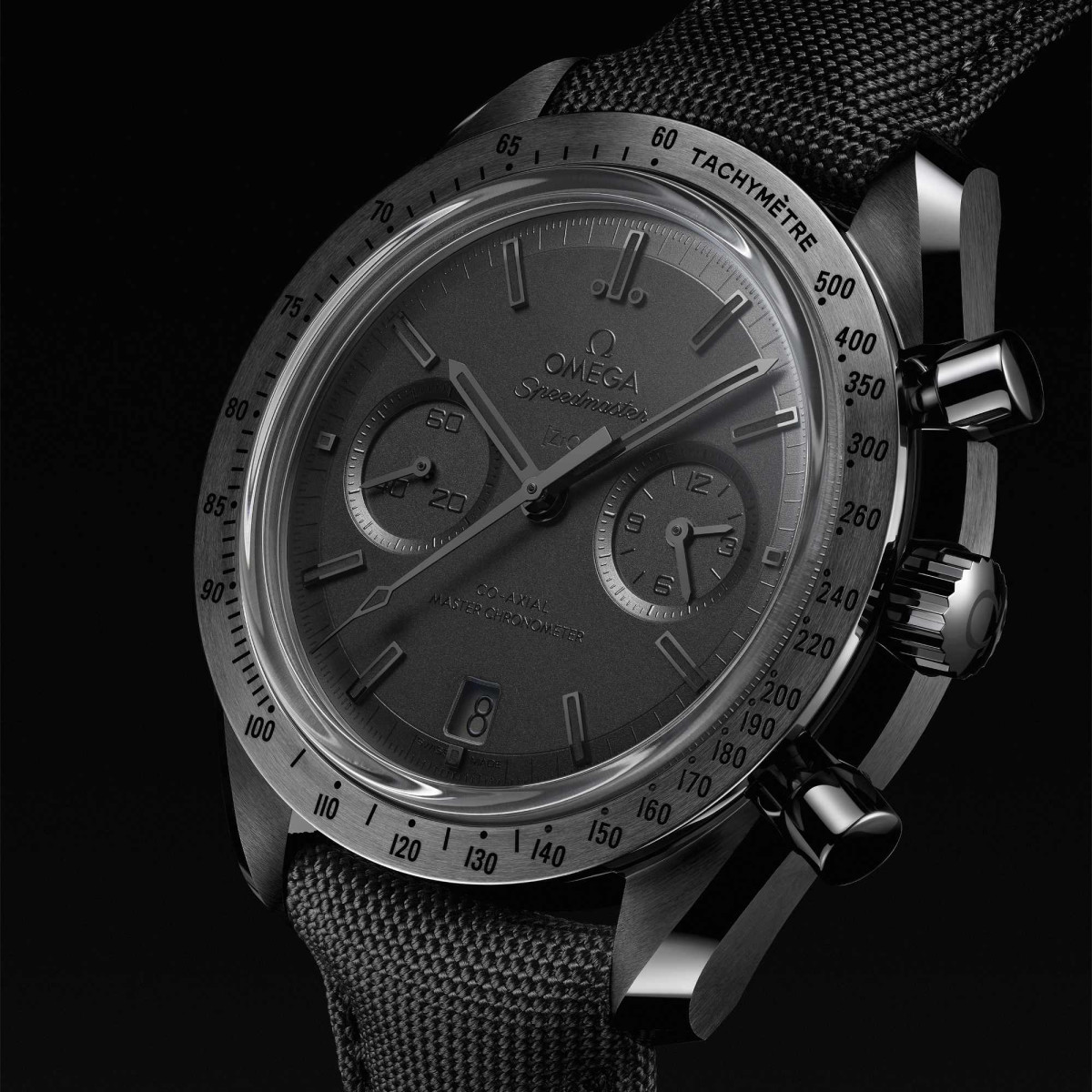 Ref. 310.92.44.51.01.003 - Diese Speedmaster Dark Side of the Moon „Black Black“ ist eine Hommage an OMEGAs Vermächtnis der Weltraumforschung. Sie besitzt ein 44,25 mm großes Gehäuse aus polierter, schwarzer Keramik. Die gebürstete Lünette ist ebenfalls aus schwarzer Keramik gefertigt und verfügt über eine lasergravierte, mit schwarzem „Grand Feu“-Email gefüllte Tachymeterskala.