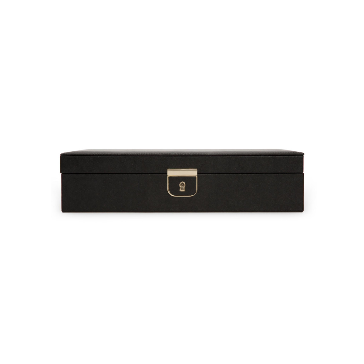 Ref. 213202 - Das charmante und elegante Palermo ist von seiner namensgebenden Stadt am Fuße eines Berges am Meer inspiriert. Mit seinem edlen schwarzen Anthrazitleder und den schicken versenkten Goldschlössern präsentiert und organisiert das Palermo Medium Schmuckkästchen Ihren Schmuck stilvoll. Mit LusterLoc™-Antianlauf-Futter und Schloss mit Schlüssel in Goldoptik.