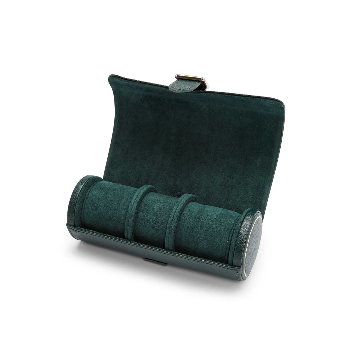 Ref. 792941 - British Racing ist vollständig handgefertigt und vereint die grüne internationale Motorsportfarbe der britischen Autos, die Anfang des 20. Jahrhunderts in Irland Rennen fuhren. Zu den feinen Details gehören handgepresste Goldfolienlinien auf genarbtem Leder. Goldfarbene Metallakzente überall. Ein weiteres Design-Highlight von WOLF. Schützen Sie Ihre Uhren auf stilvolle Weise auf Reisen mit unserem dreifachen Uhrenrolletui. Bietet Platz für bis zu 3 Uhren mit 2 Uhrenschutzhüllen und verstellbarem Druckknopfverschluss. Zusätzlich verfügt das Uhrenrolletui über eine versteckte Schmuckkapsel (zum Patent angemeldet) mit drei Fächern zur sicheren Aufbewahrung von Manschettenknöpfen, Ringen und anderen kleineren Wertsachen.